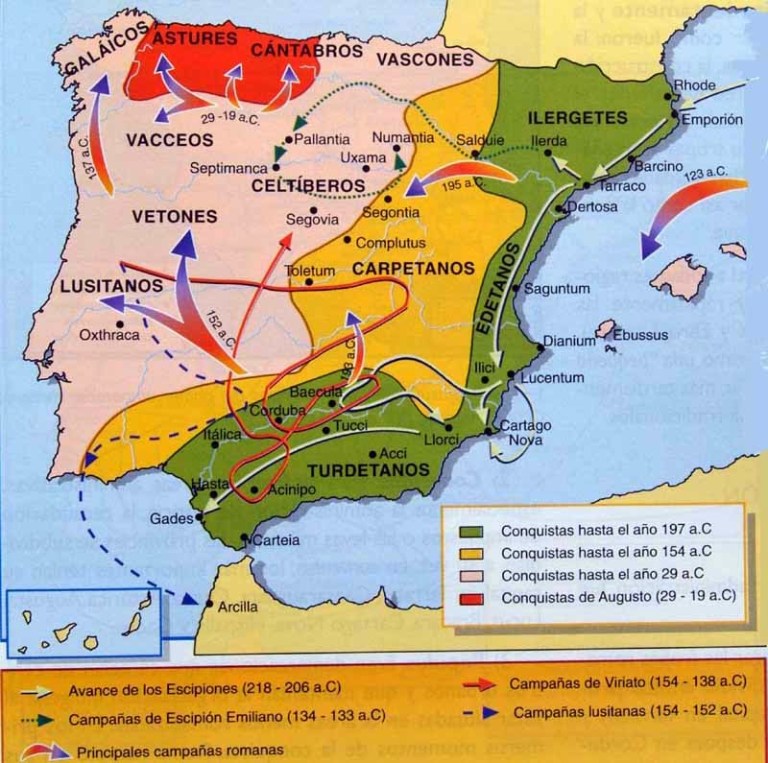 - From 2018 to 197 BC, Romans conquered the Meditarranean coast as well as the Guadalquivir and Ebro valleys.