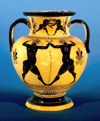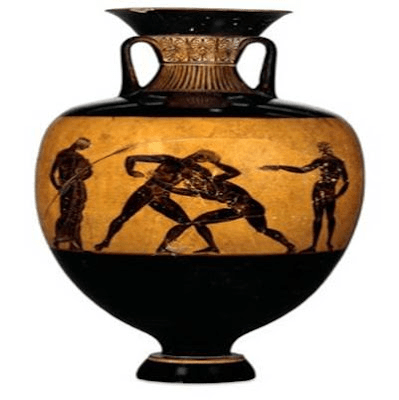 - Lucha: Se practicaba en la palestra, la practicaban los atletas de más peso y fuerza. Con reglas recogidas de un manual. Ganaba aquel que no se retiraba; el que conseguía tres derribos validos o si el adversario no se presentaba.