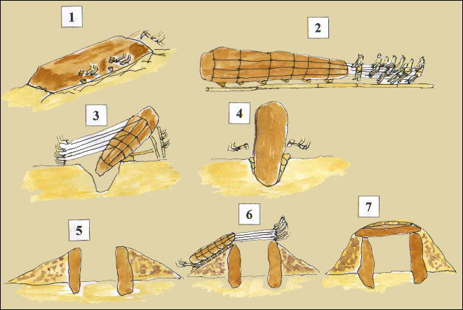 Los habitantes de estos poblados son los autores de los monumentos megalíticos, así llamados por estar construidos con grandes bloques de piedra, muchas veces arrastrados hasta los lugares en los que aparecen estas construcciones desde muchos kilómetros de distancia, sobre ramas de árboles o troncos.